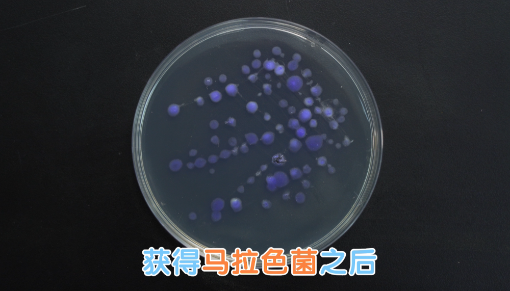 培养基中含有马拉色菌的染色剂,在32℃的温度下培养7天,获得马拉色菌。培养皿中显示紫色的就是马拉色菌。