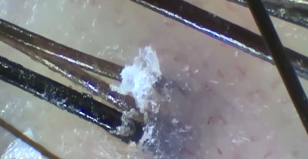 分别在3天后、7天后,检测人员上门进行毛囊检测。7天结果显示,两位实验员的头皮状况,都有肉眼可见的明显改善。